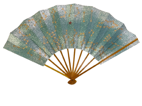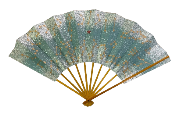 A sophisticated Japanese folding fan crafted by Jumatsuya Fukui, a renowned Kyoto atelier known for its elegant handmade fans.