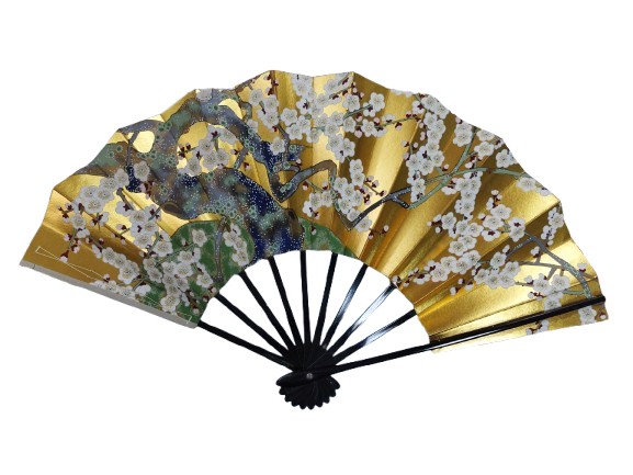 This exquisite Japanese folding fan showcases plum blossoms & cherry blossoms — a symbol of hope, renewal, and strength in Japanese culture.