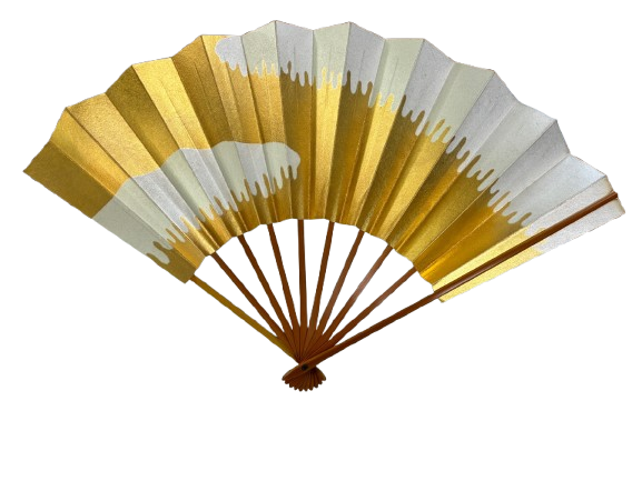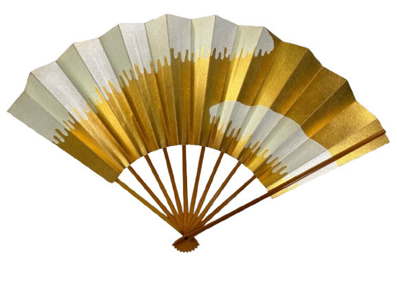 This fan embodies simplicity and elegance through its gold and silver gradient design, symbolizing balance, prosperity, and purity in Japanese aesthetics.