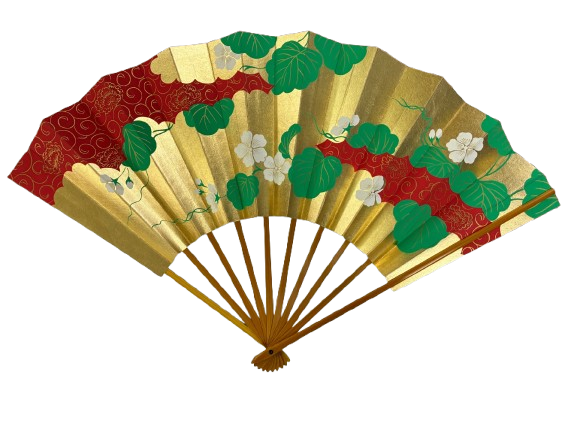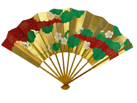 The “Imperial Garden” design features a brilliant gold-leaf background accented by a flowing crimson wave and decorated with white blossoms and green vines — a timeless symbol of grace, vitality, and harmony in Japanese aesthetics.