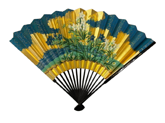 A magnificent creation from Jumatsuya Fukui, Kyoto’s renowned fan atelier celebrated for their mastery in gold-leaf art and classical Japanese elegance.