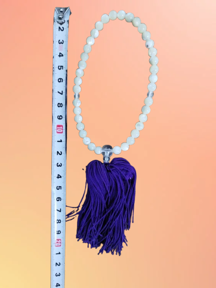 This set of traditional Japanese Buddhist prayer beads (Juzu / Nenju) features polished white beads paired with a rich purple tassel.
